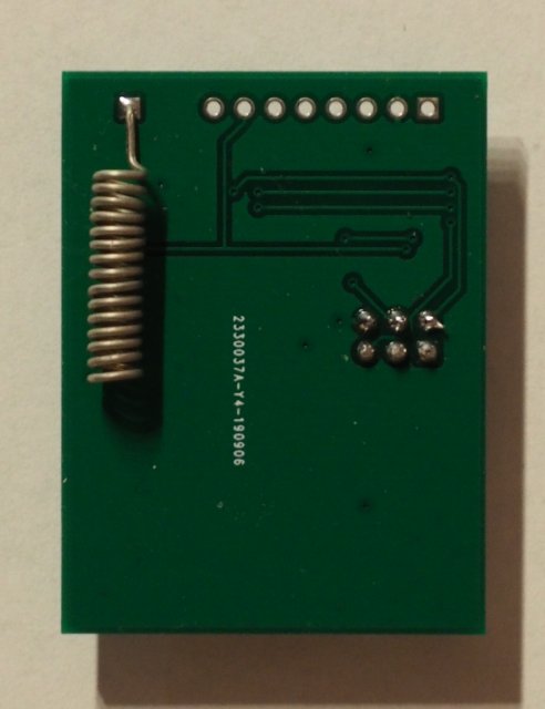 This is the first iteration of the ATTNode PCB. Measuring only 36mmx47mm it is already quite small. The board features 6 free GPIO-Pins from the ATTiny84 + power on a 2.54mm pin header, a standard atmel-compatible programming header and solderpads for an optional onboard SMD LED + fitting current-limiting resistor. All further development will be on the next iterations of the board. See the navigation at the left for the newer versions. The ATTNode v2 firmware will continue to support the v1 boards, as they use the same hardware. Here are some pictures of the board: